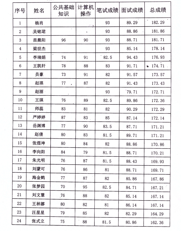 注:姓名为杨肖、吴铭珺、梁世杰、赵丽的四位考生为免笔试考生
